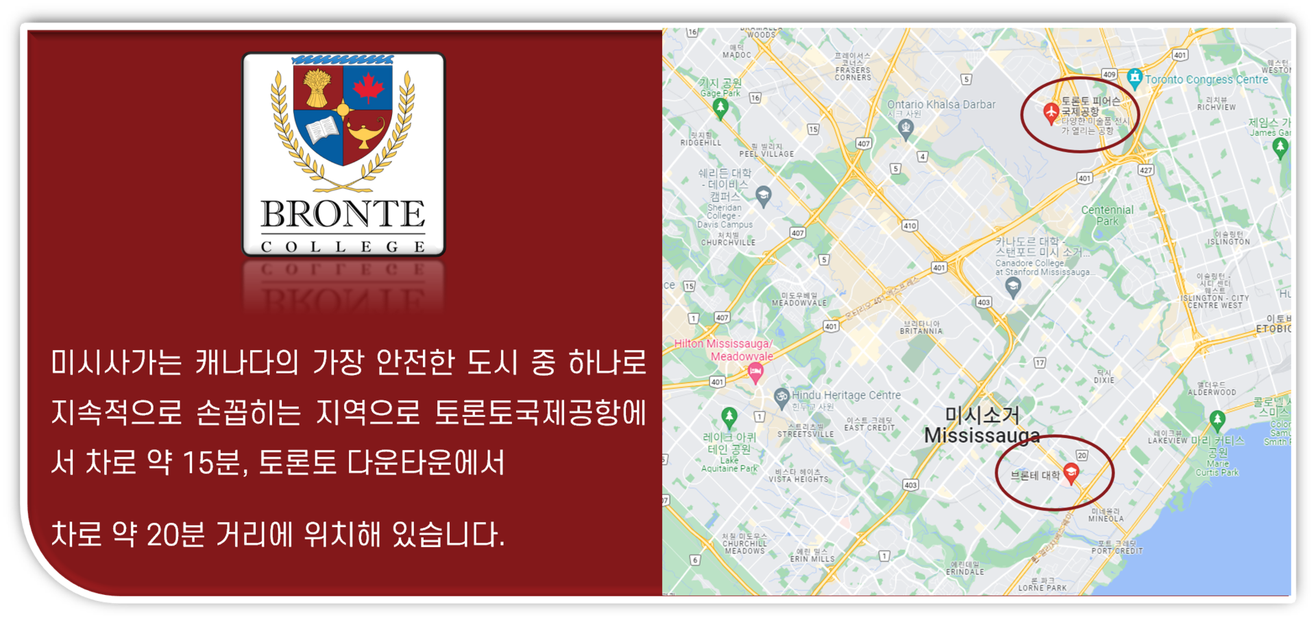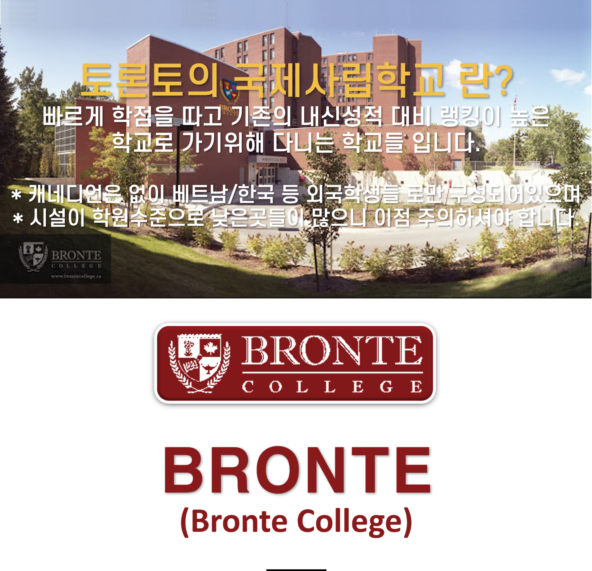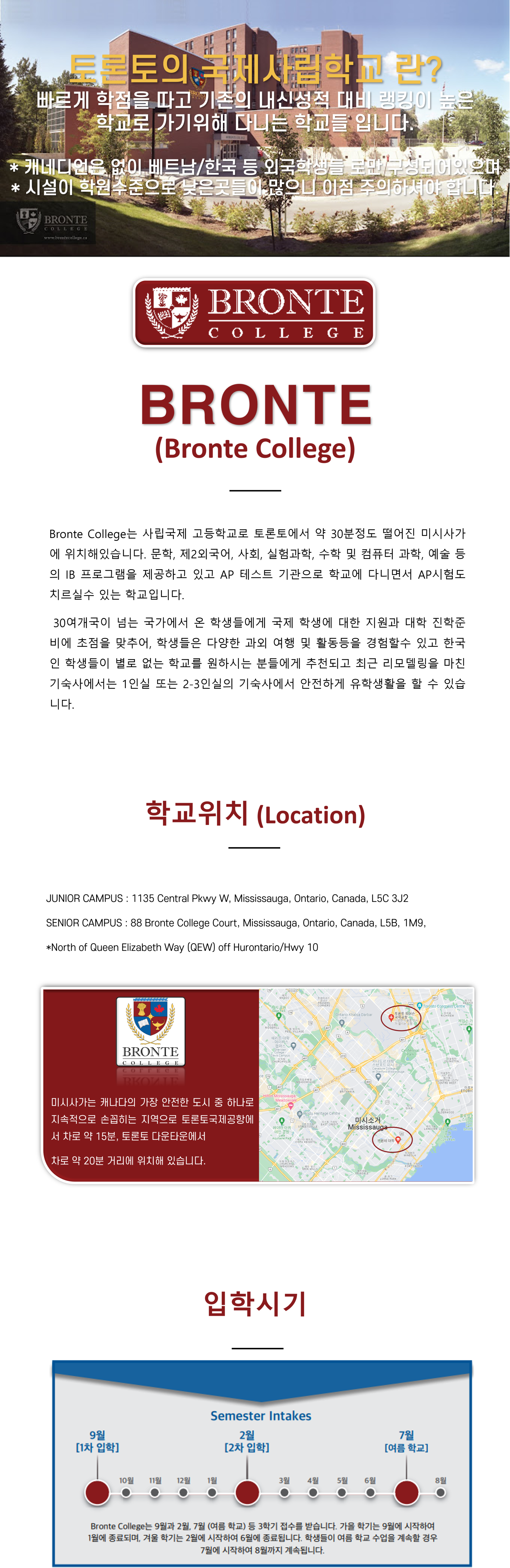 Bronte College 는 사립국제 고등학교로 토론토에서 약 30분정도 떨어진 미시사가에 위치해있습니다.