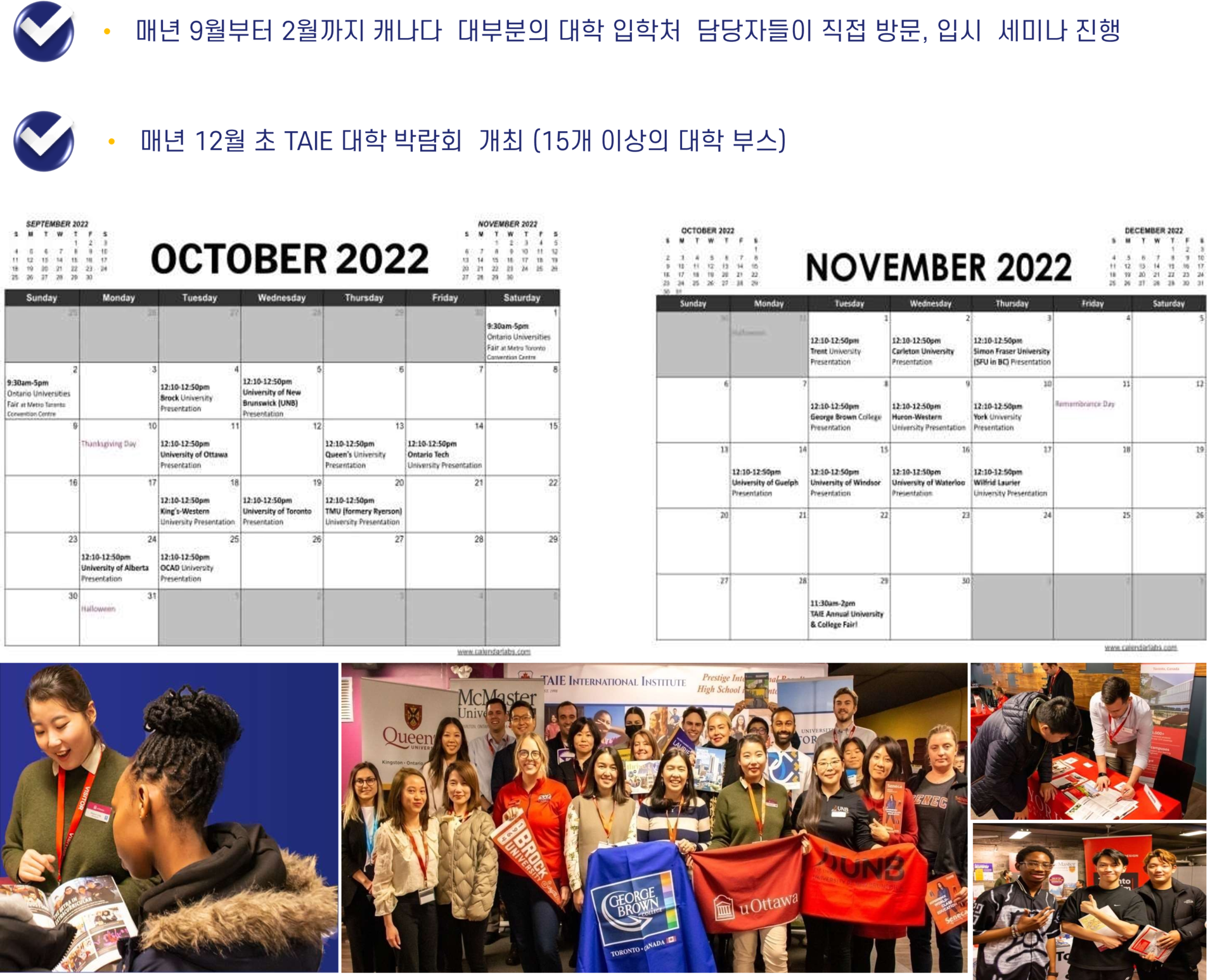 TAIE  는 9학년부터 12학년까지 OSSD (온타리오 고등학교) 프로그램을 운영중인 국제사립고등학교입니다.